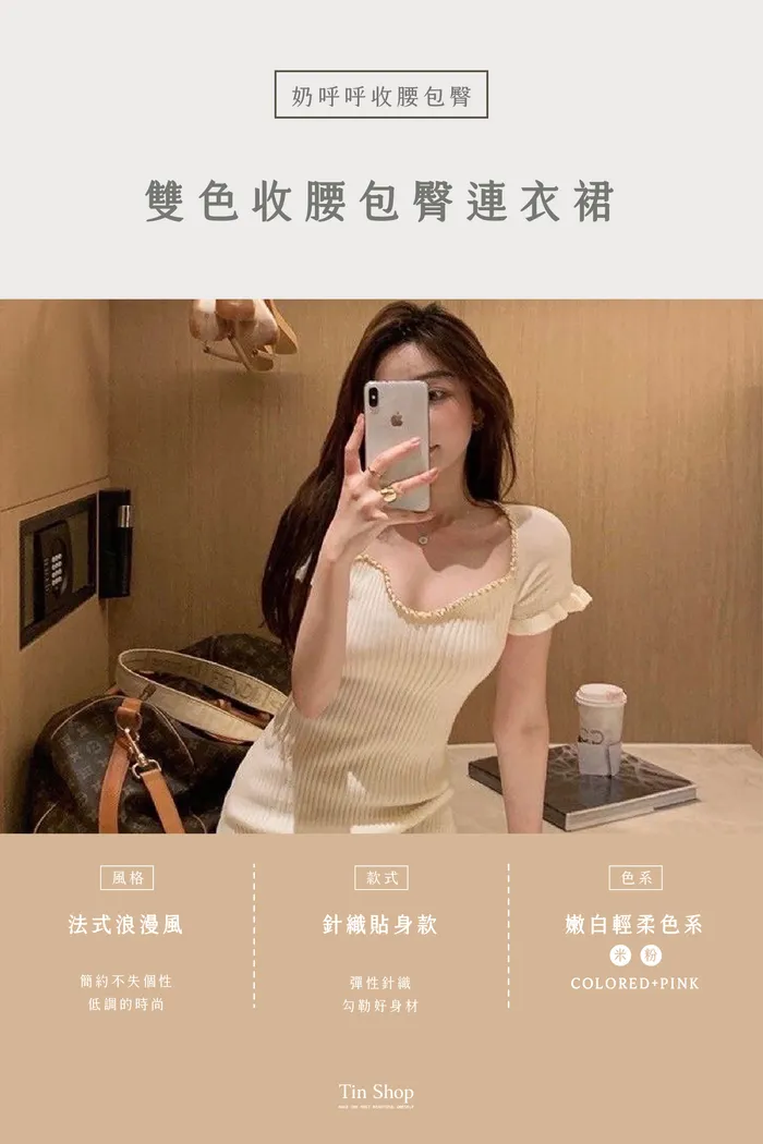 奶呼呼💕雙色收腰包臀連衣裙